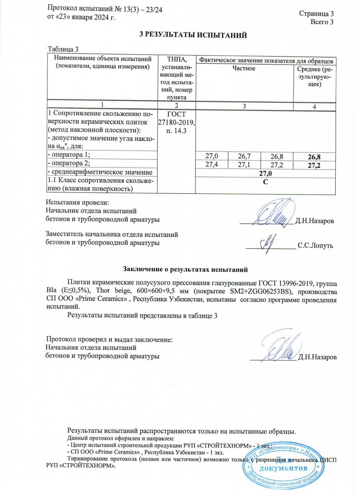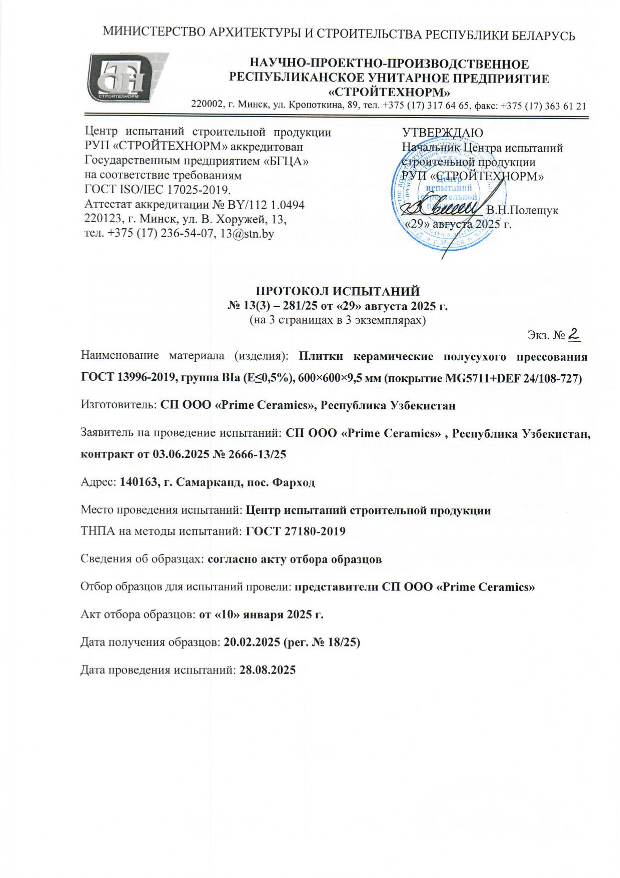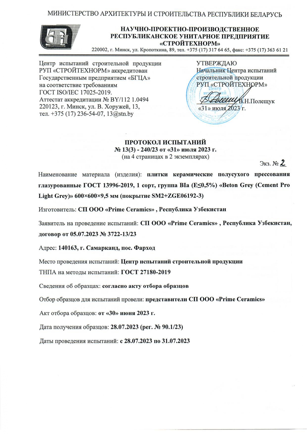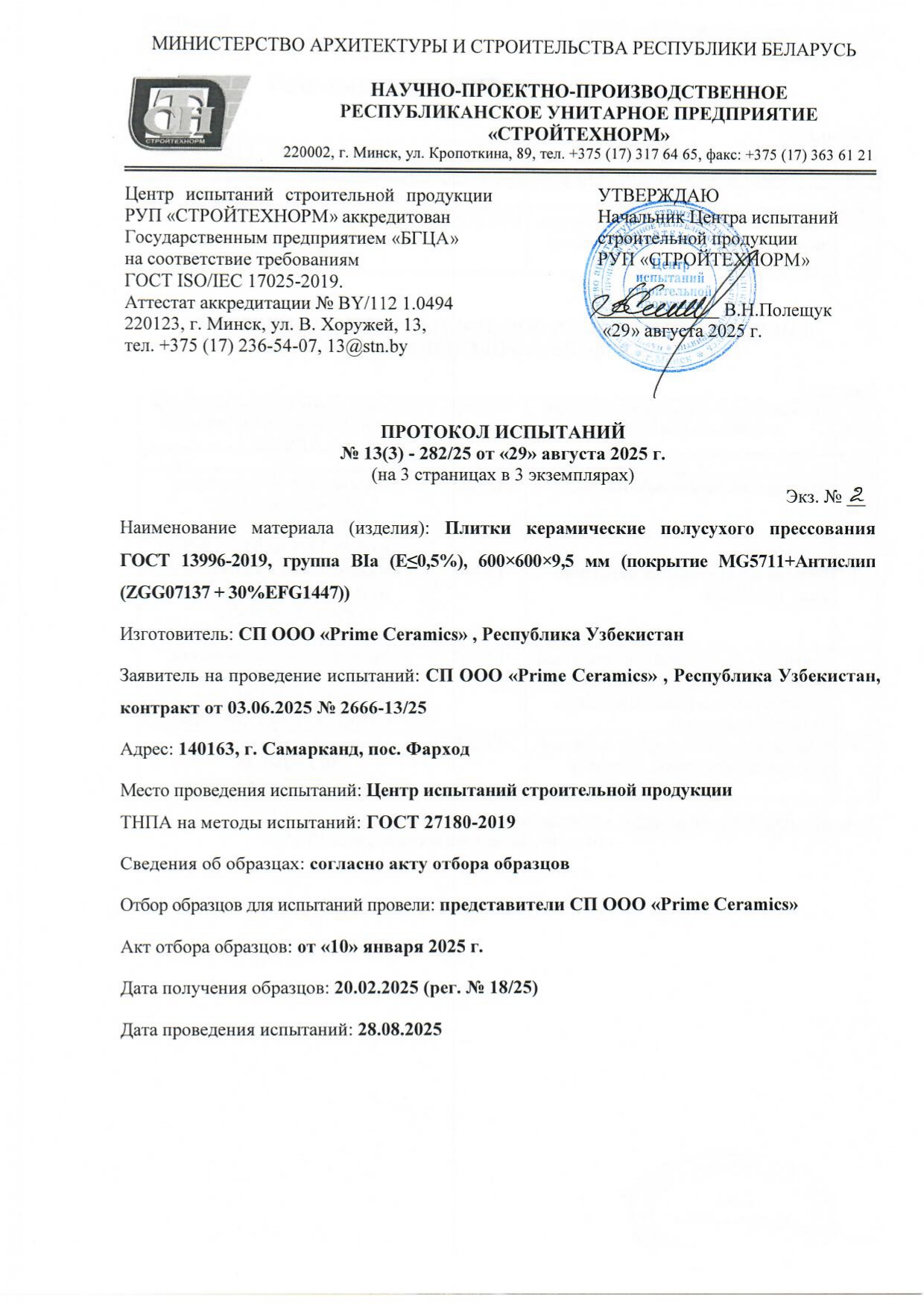 Протокол испытаний