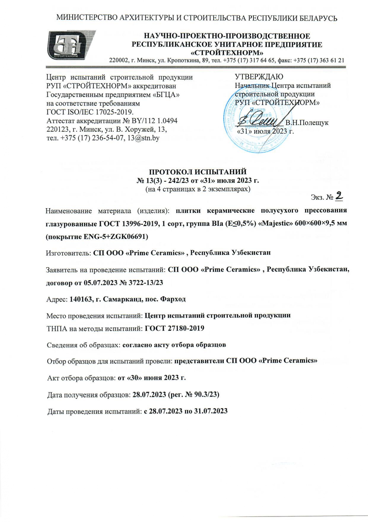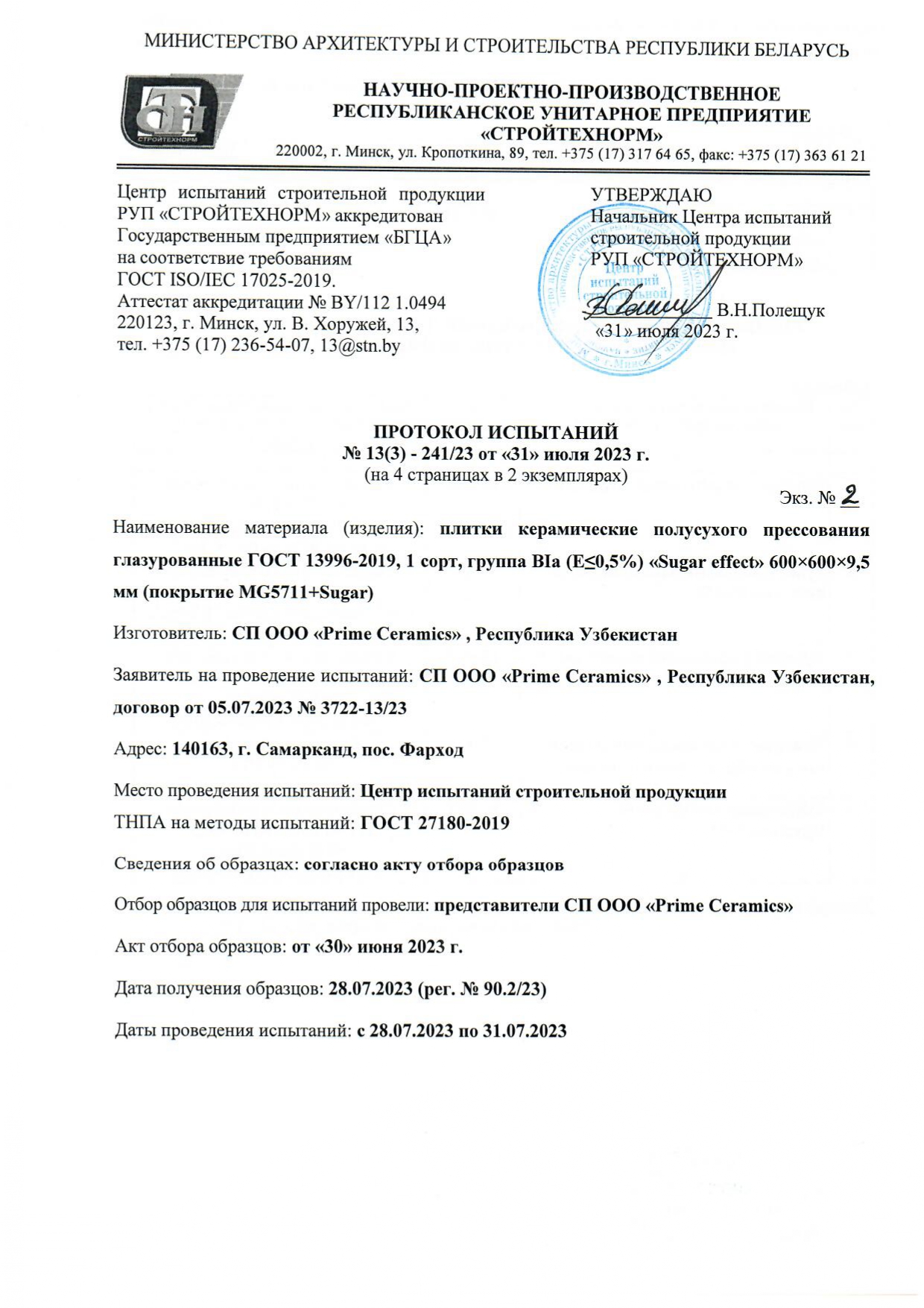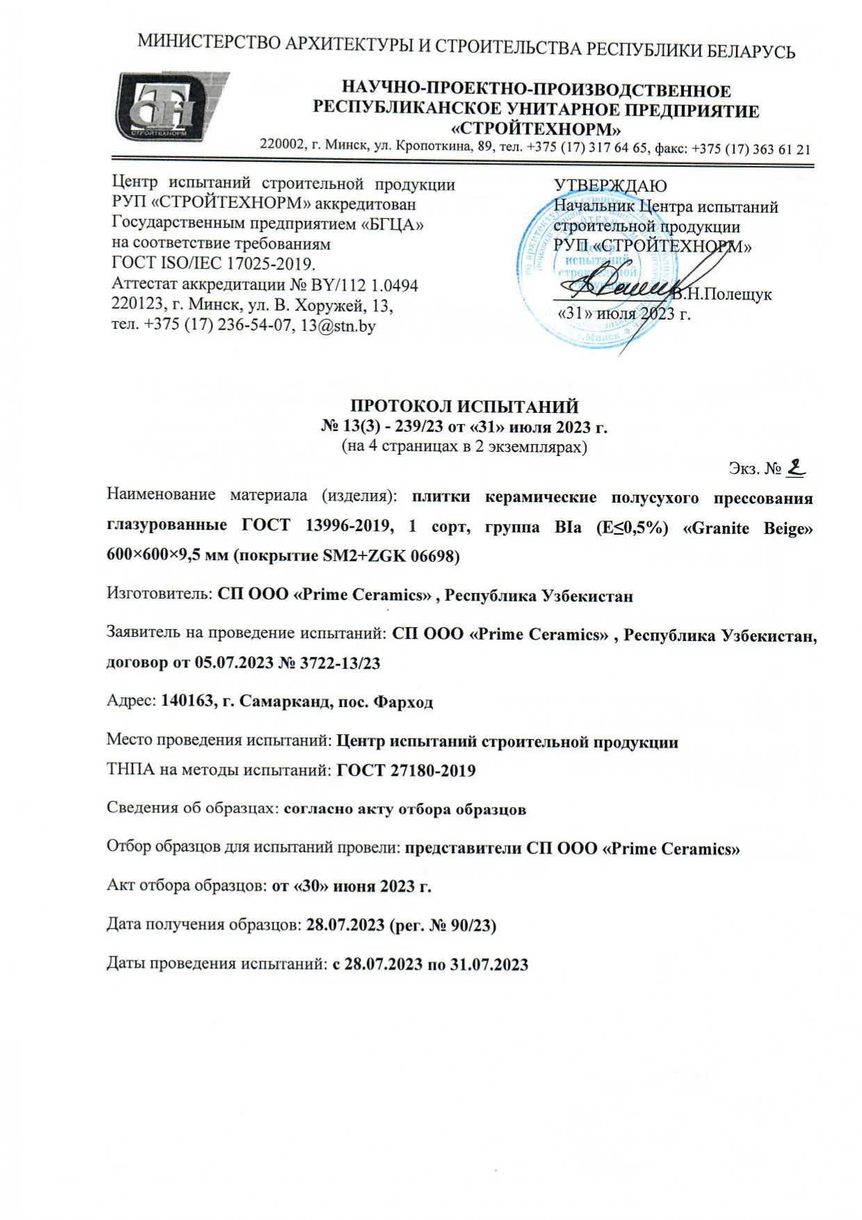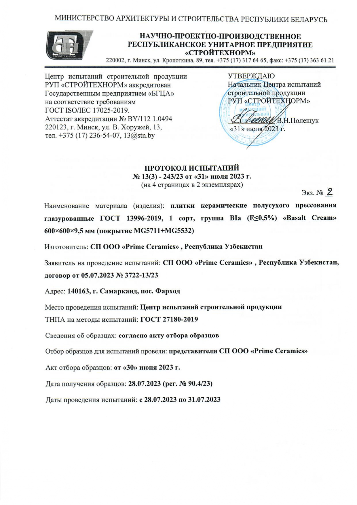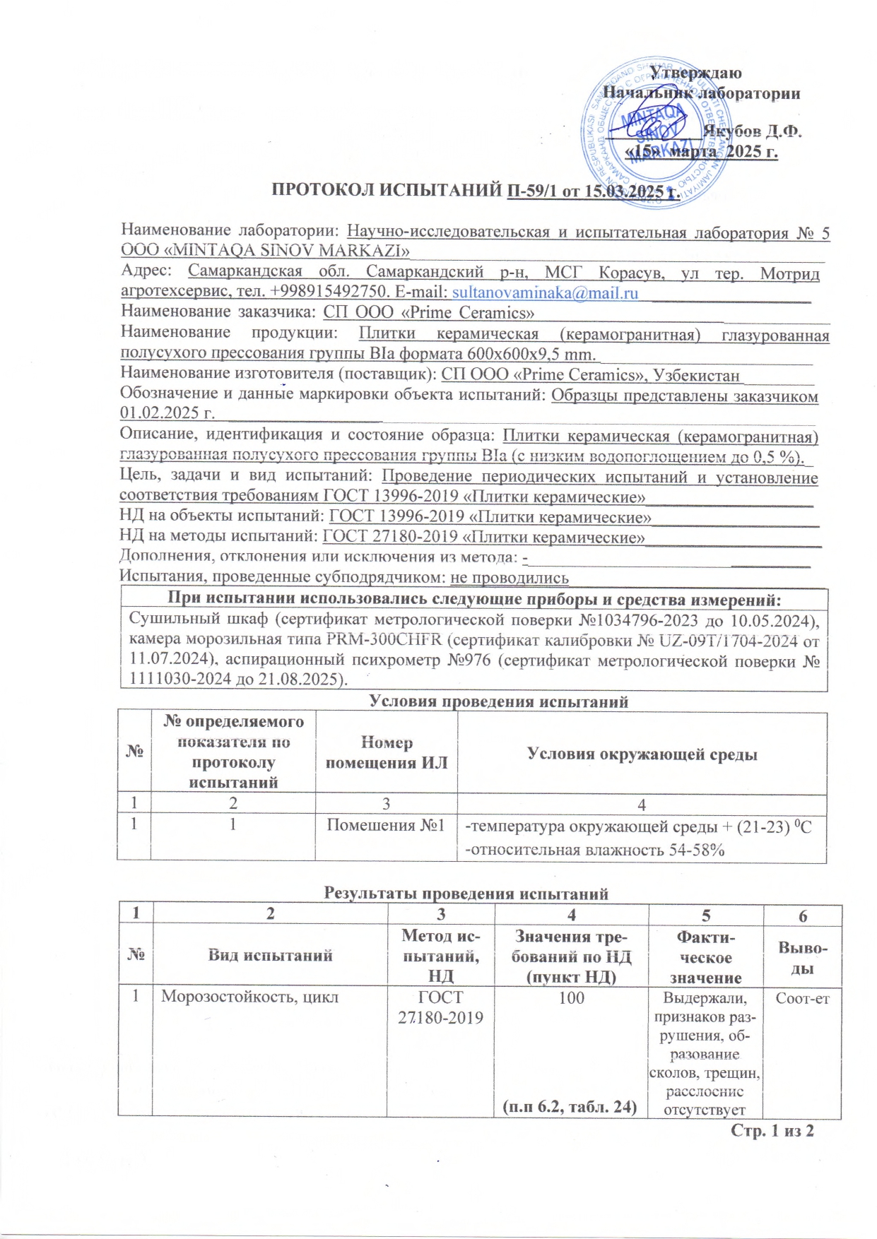 Протокол испытаний