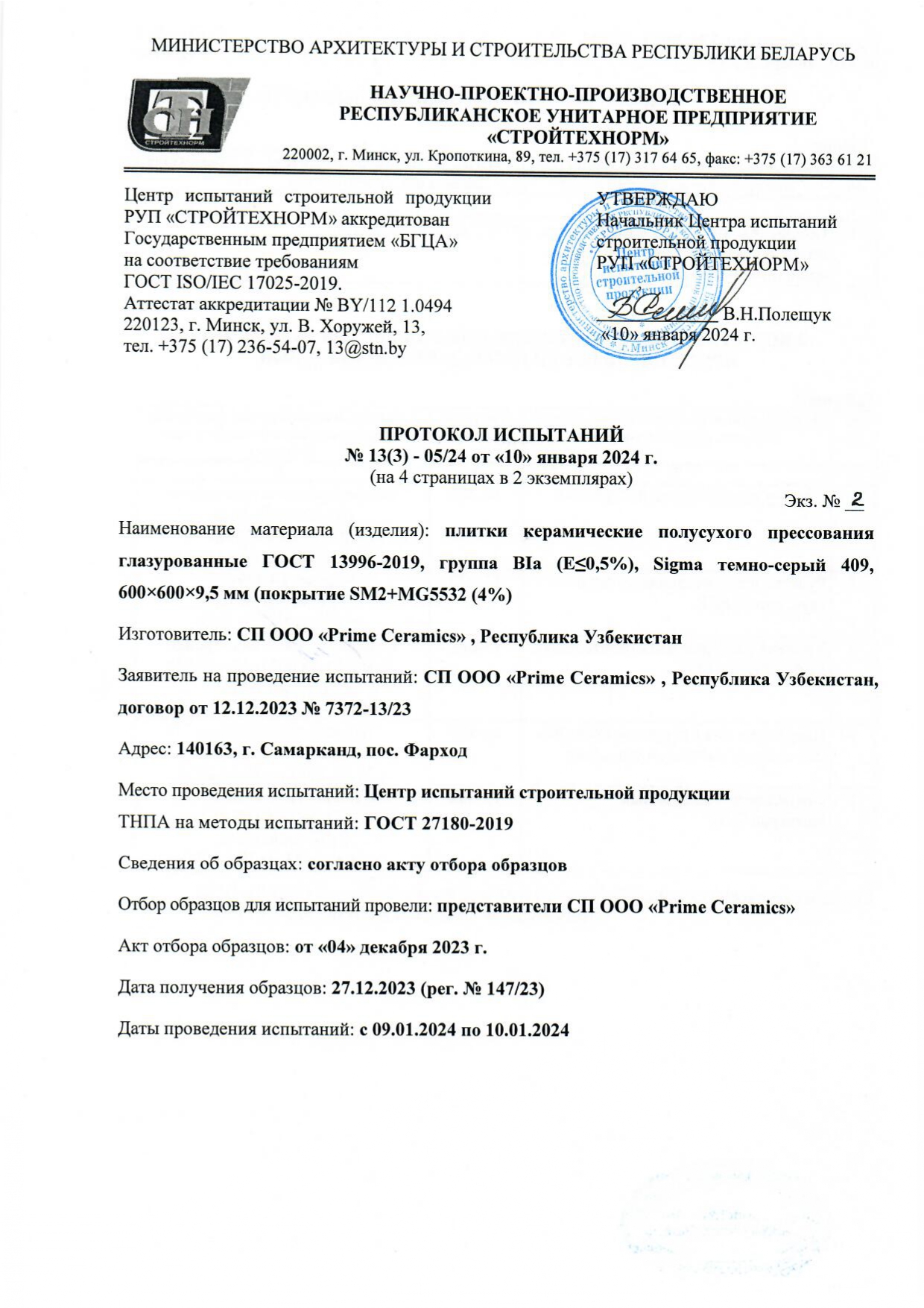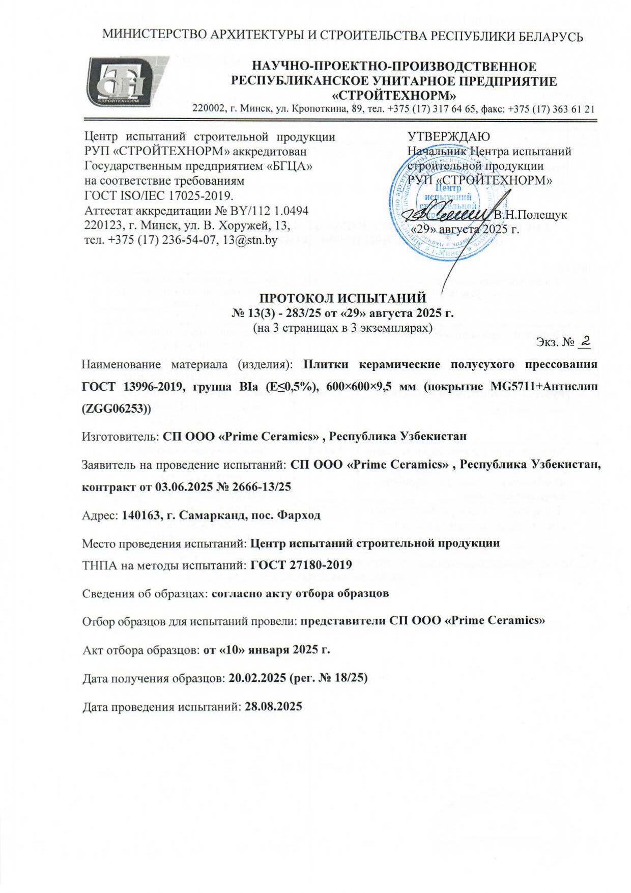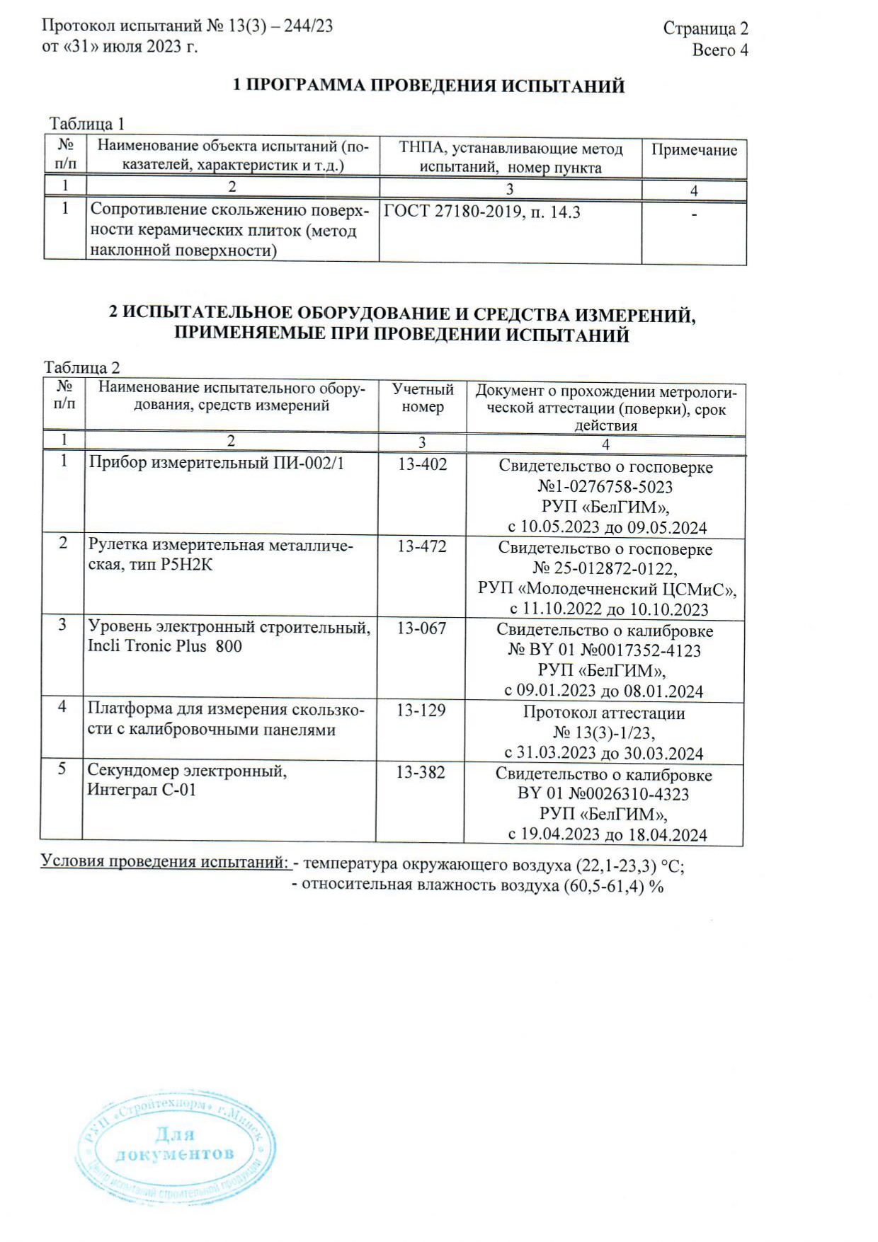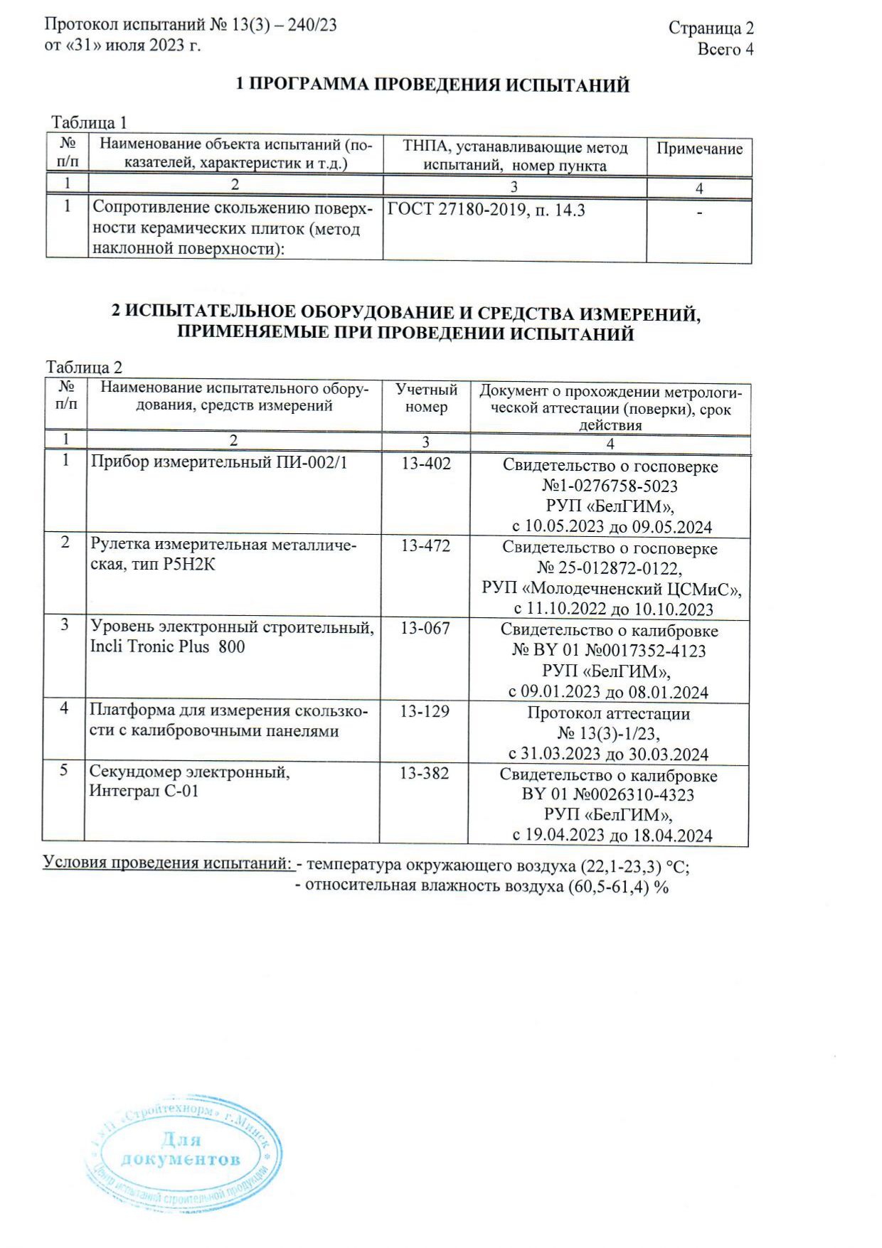 Протокол испытаний