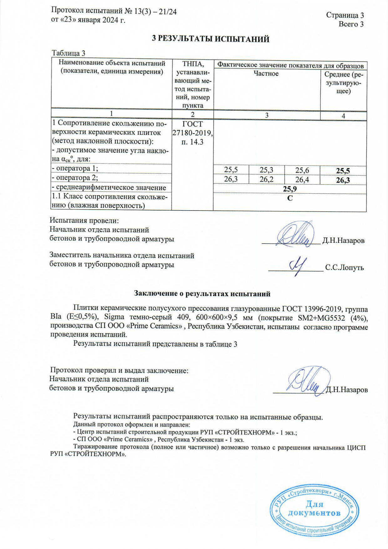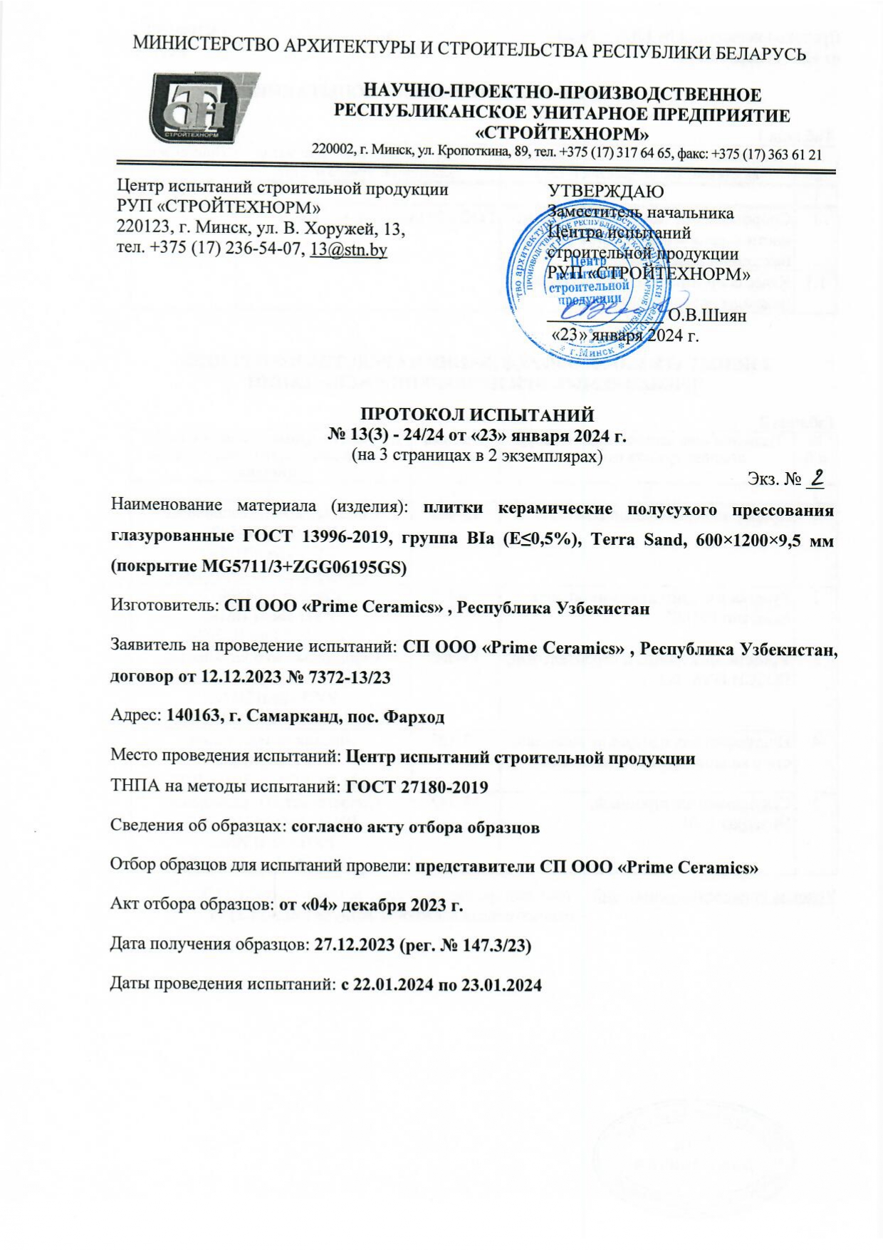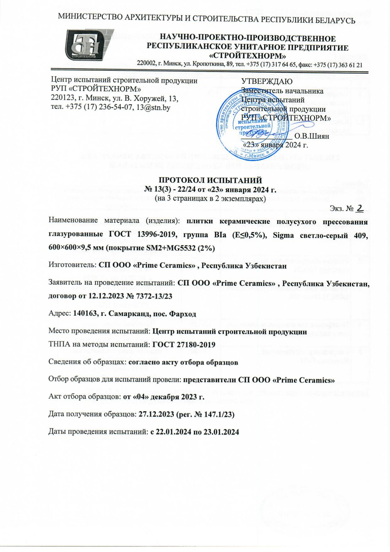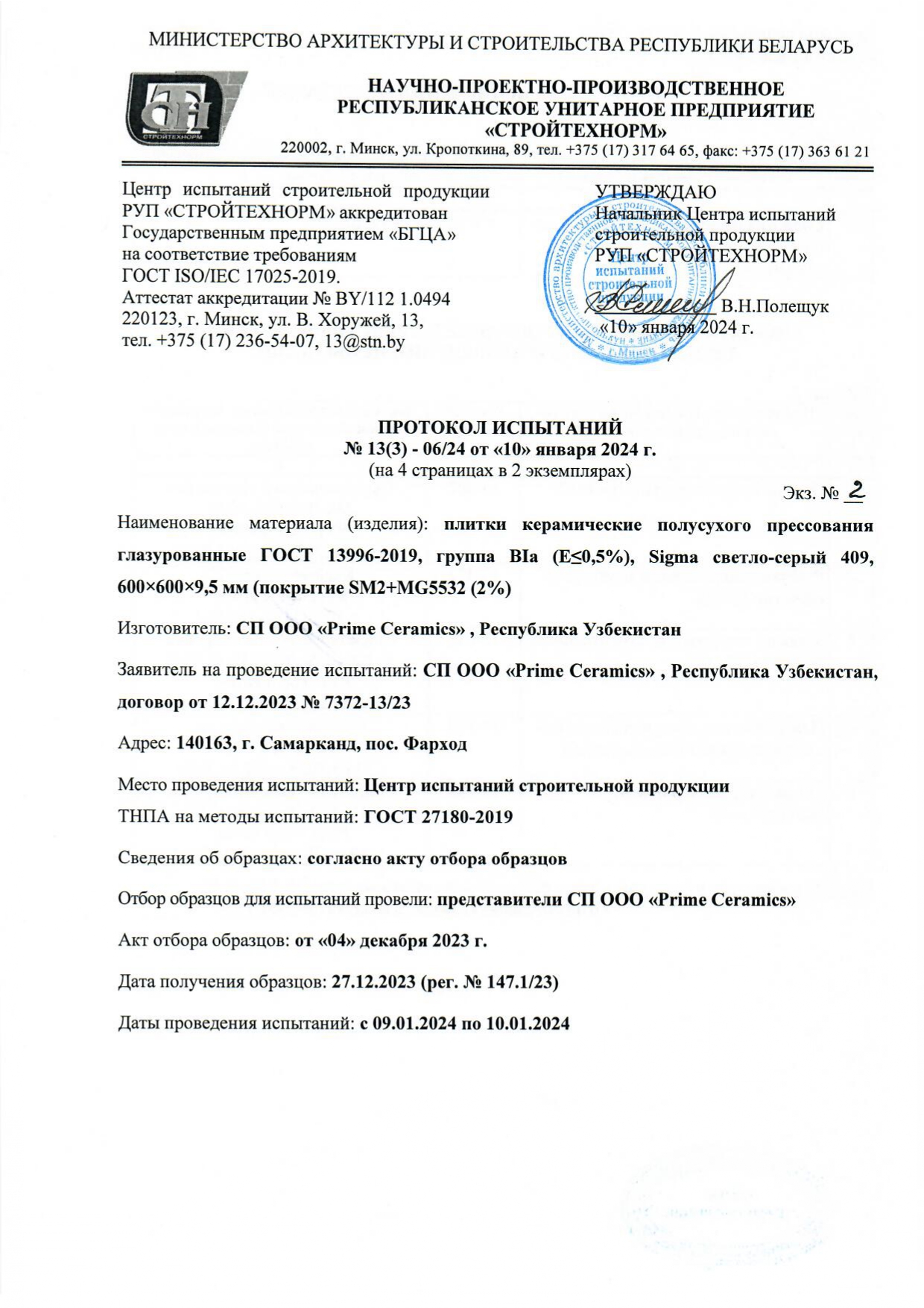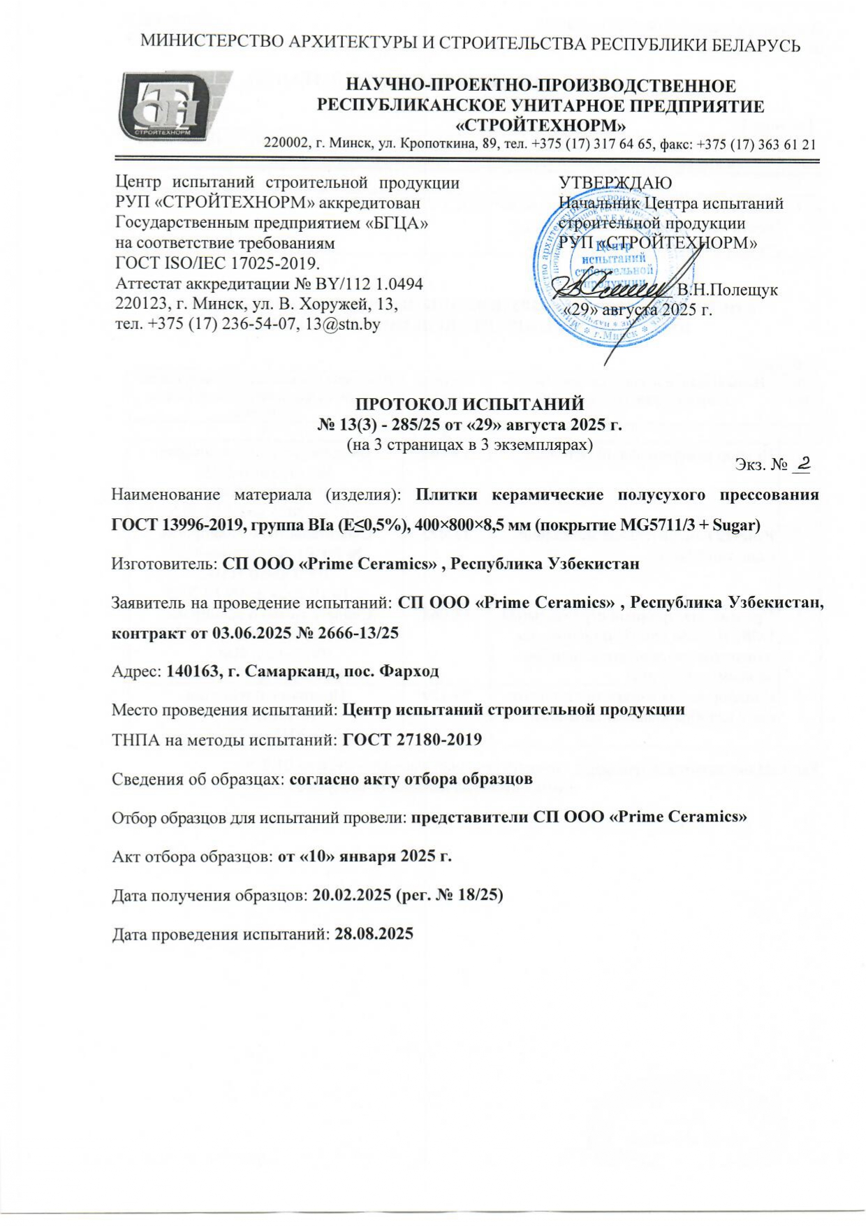 Протокол испытаний