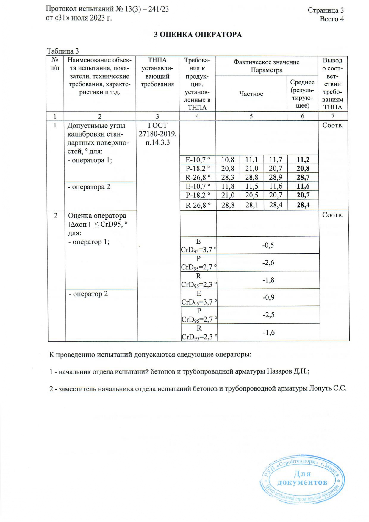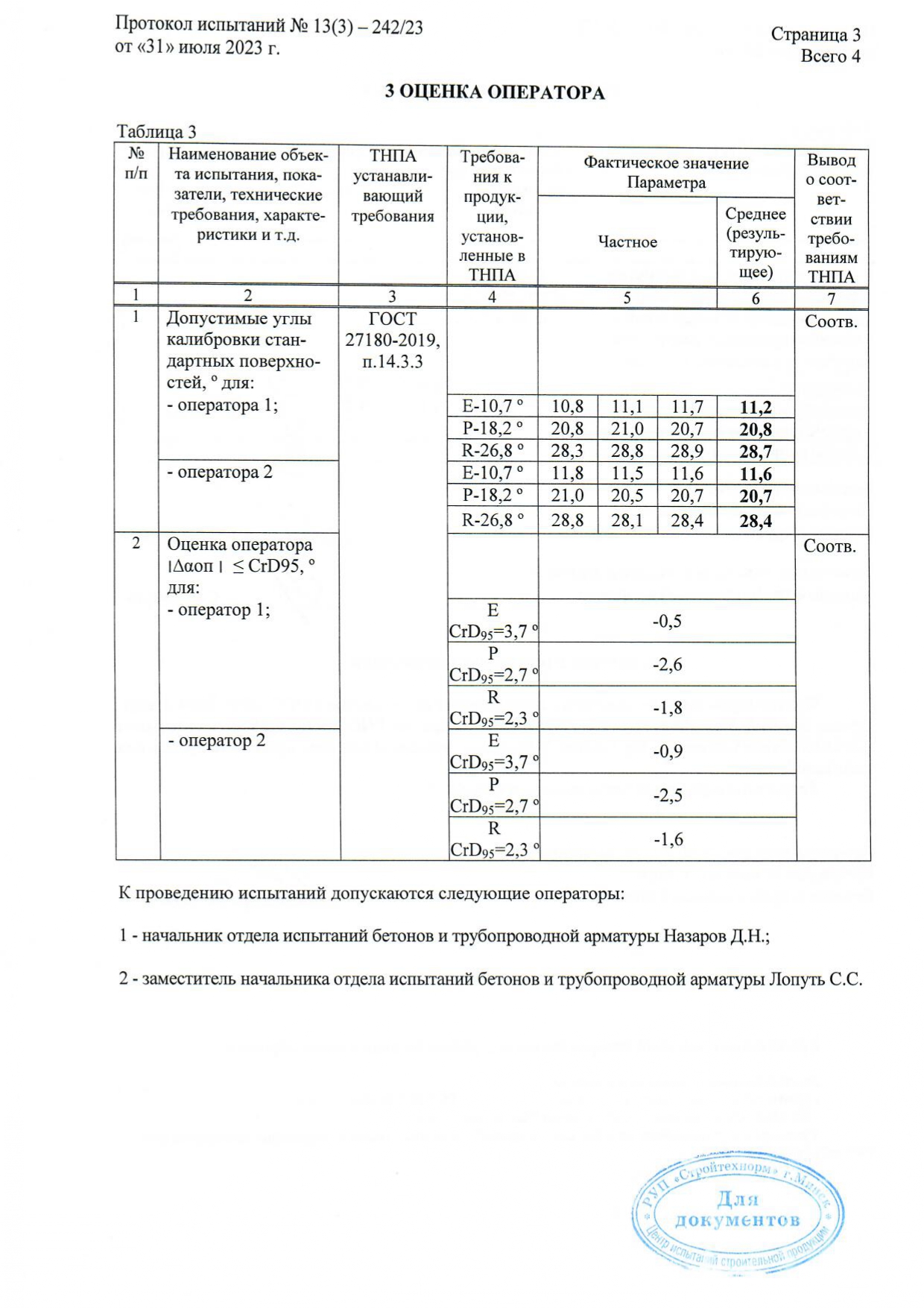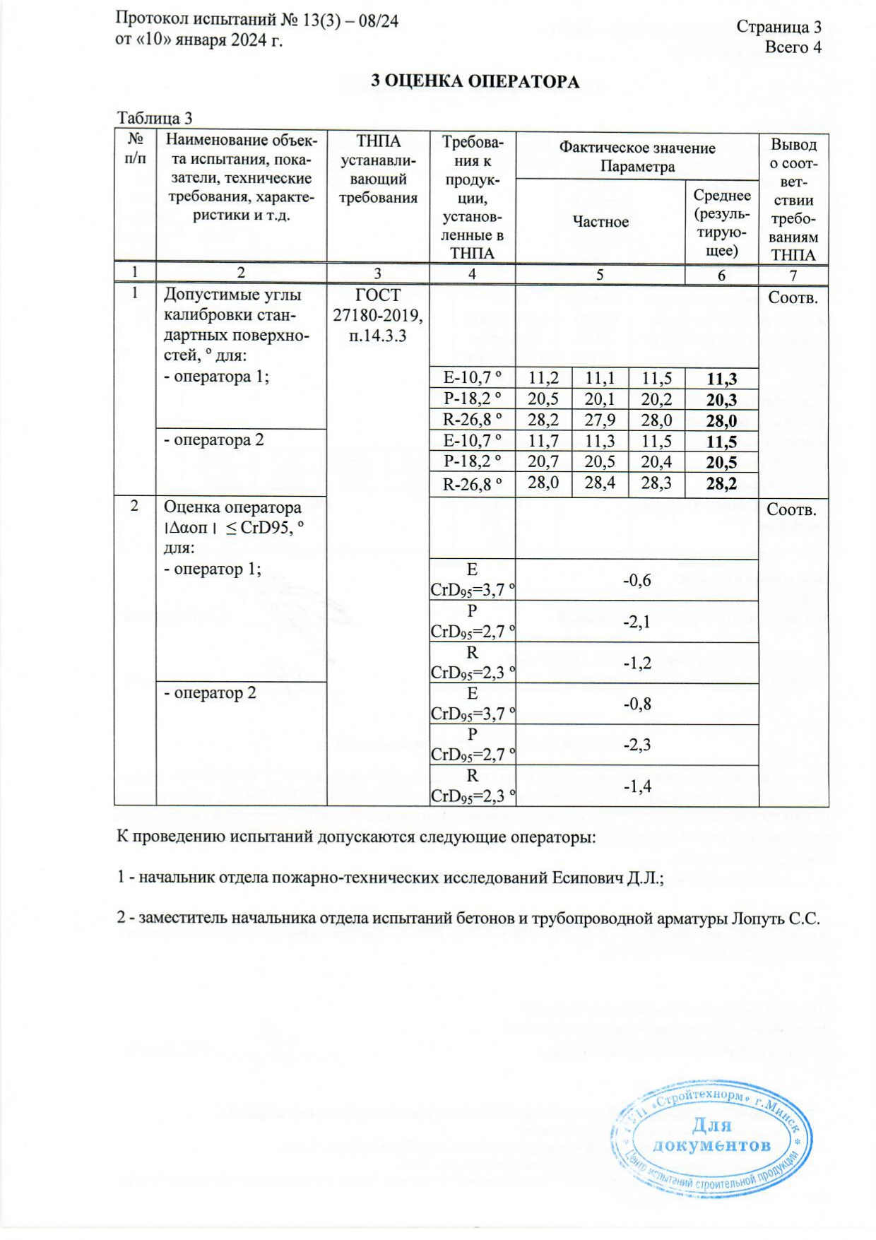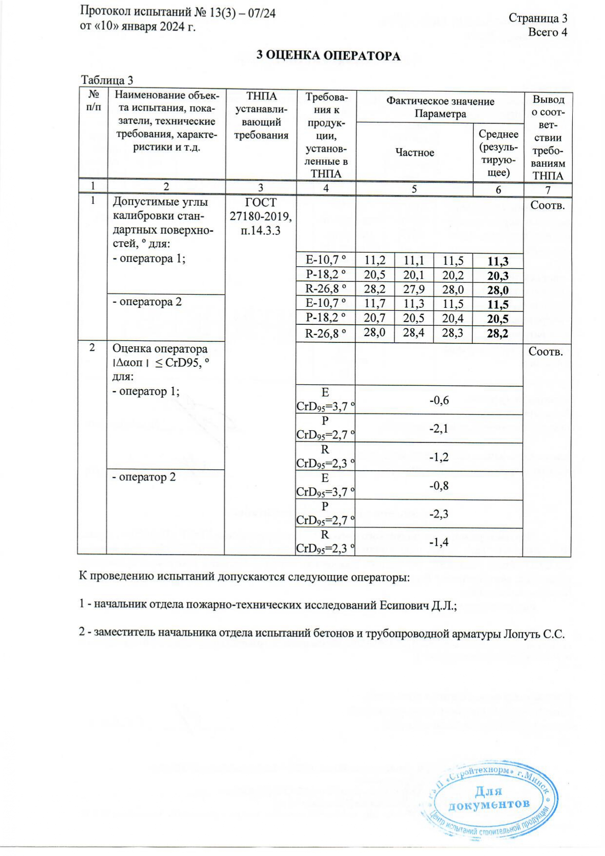 Протокол испытаний