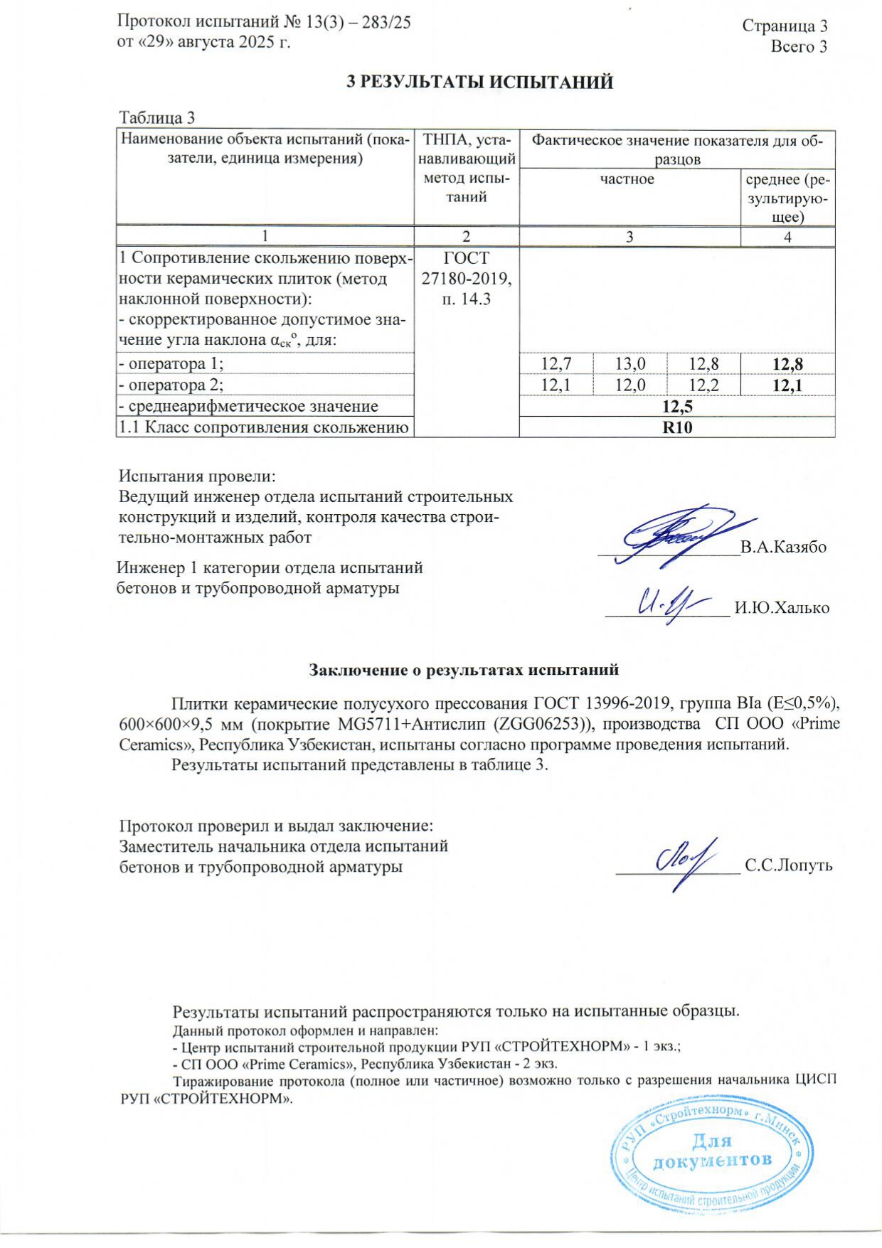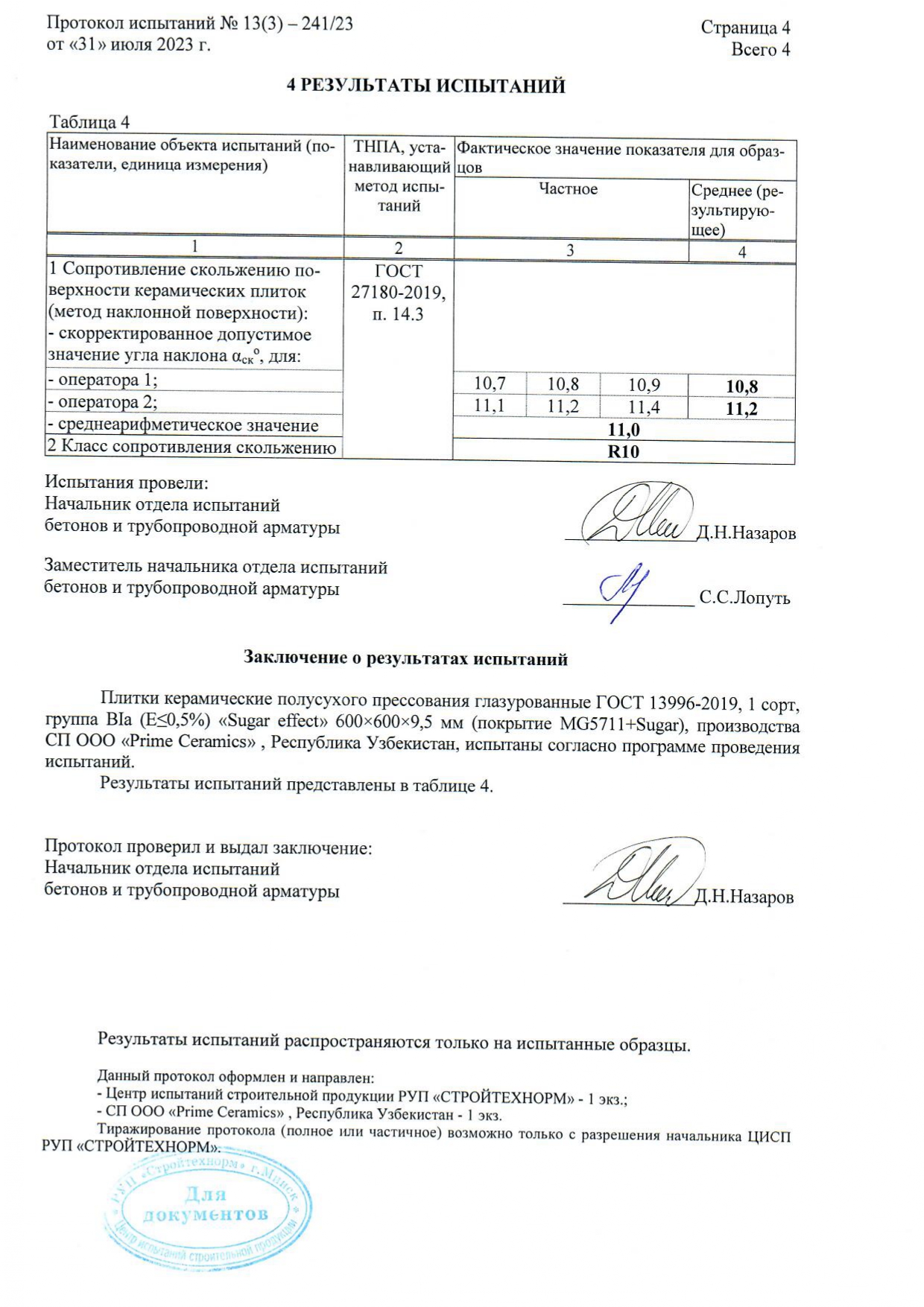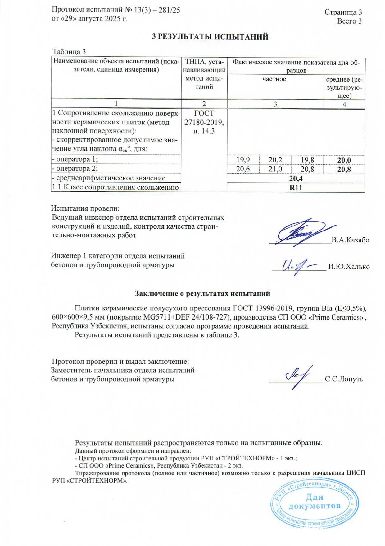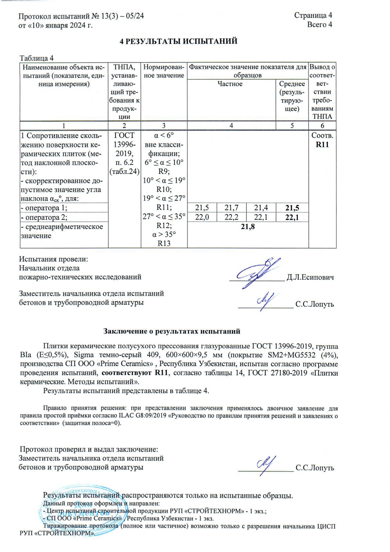 Протокол испытаний R11