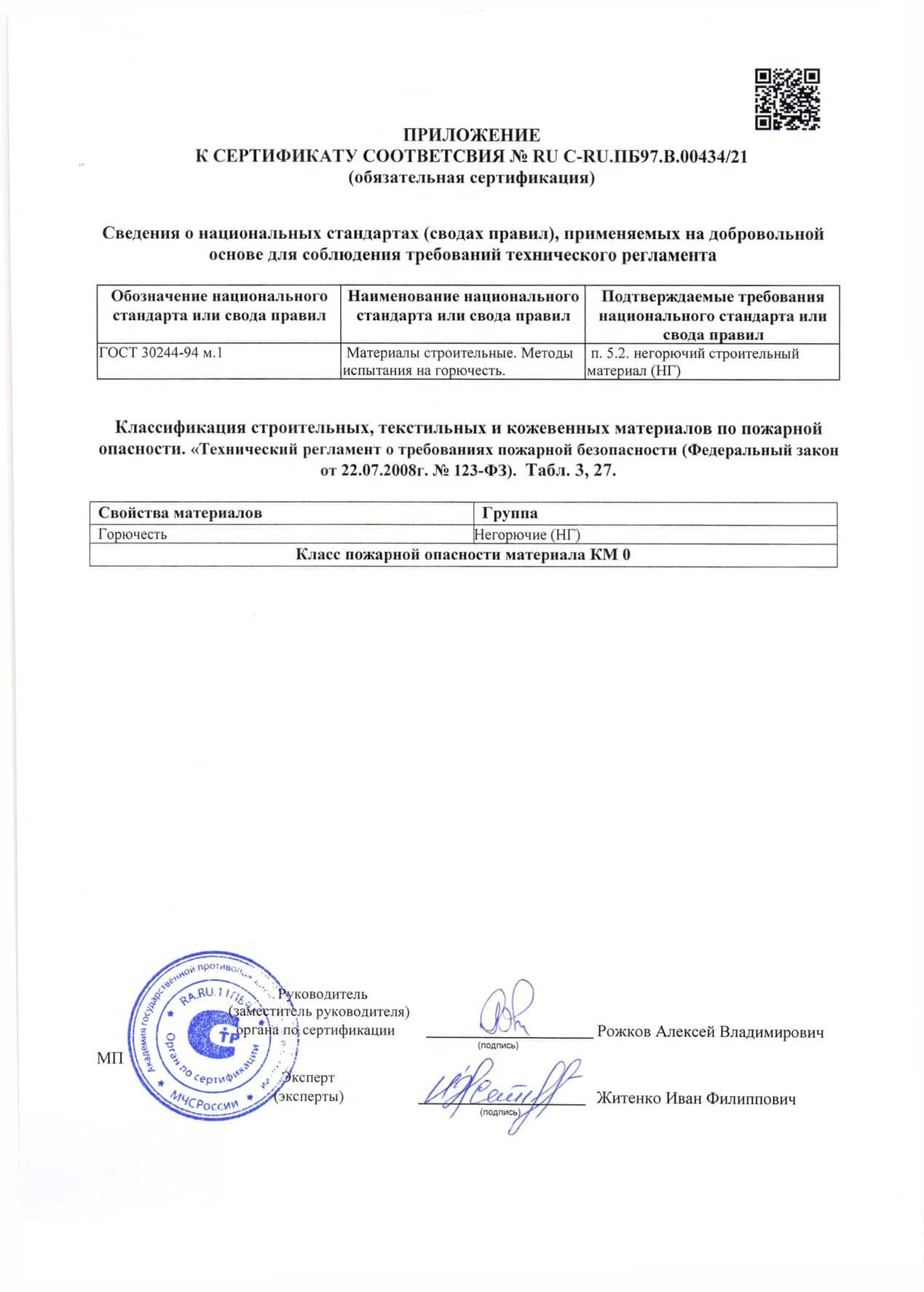 Сертификаты пожарной безопасности