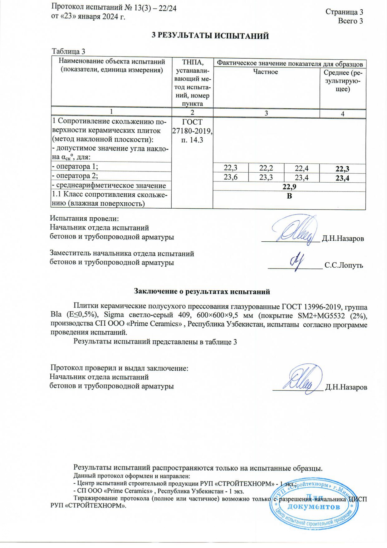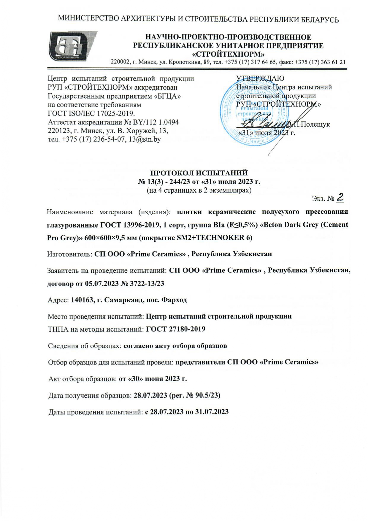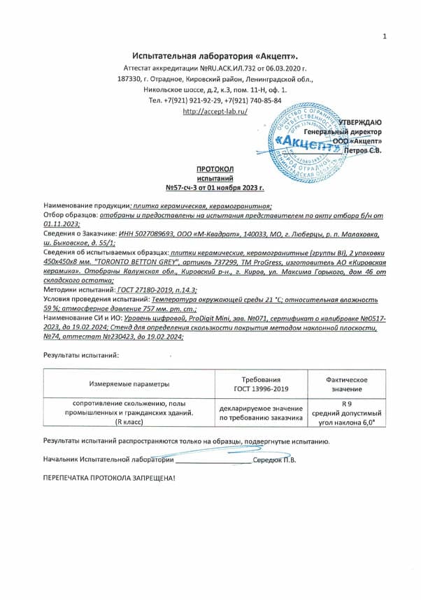 Протокол испытаний
