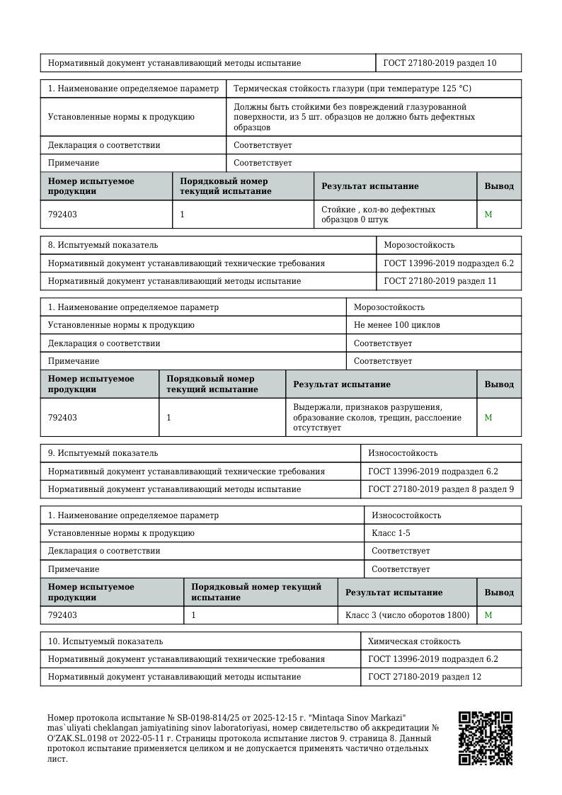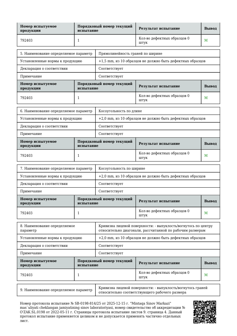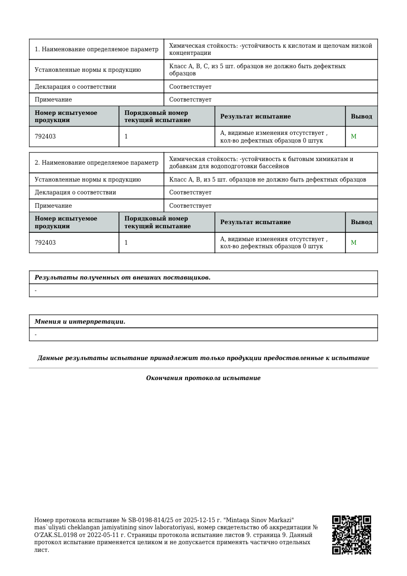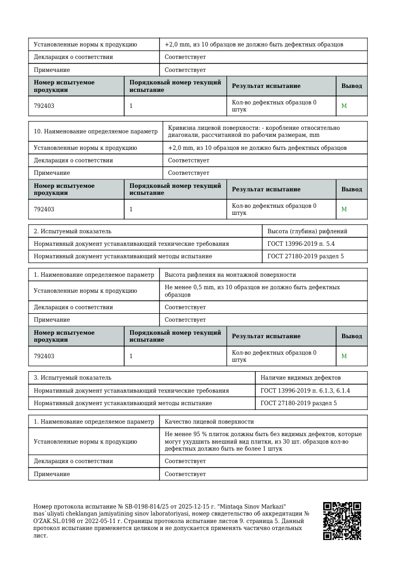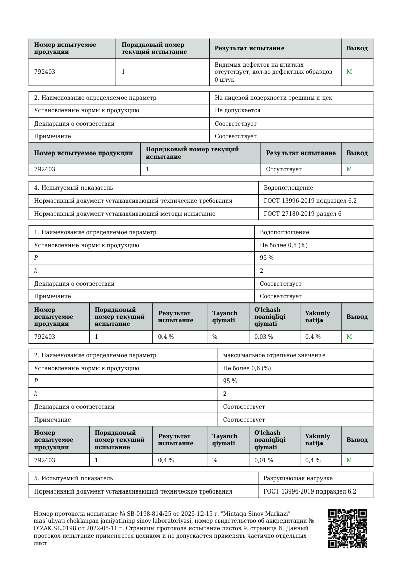 ПРОТОКОЛ ИСПЫТАНИЙ 1200х600 мм