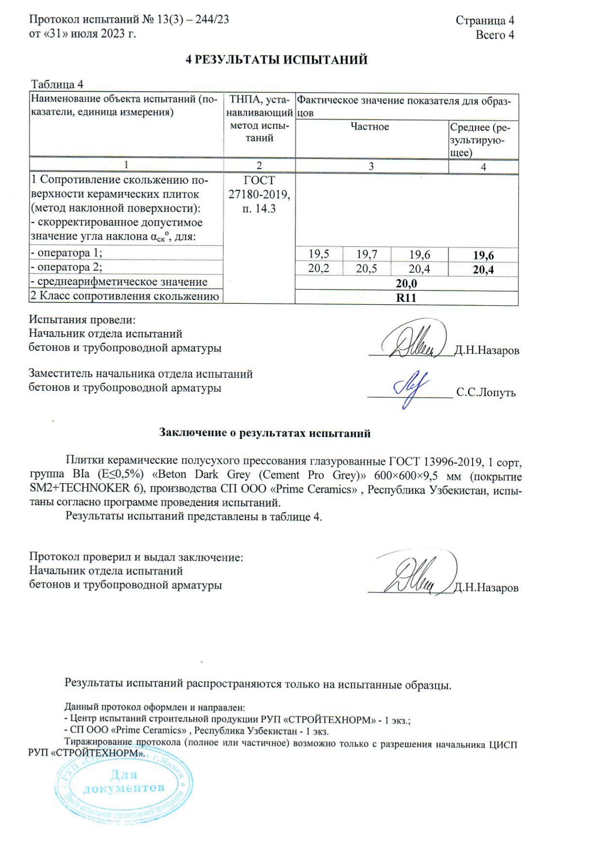 Протокол испытаний R11